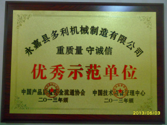 永嘉縣多利機(jī)械制造有限公司 重質(zhì)量 守誠信 優(yōu)秀示范單位