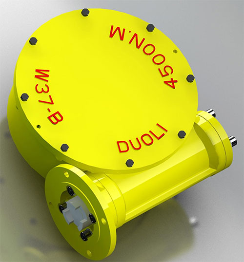 W3系列蝸輪箱,殼體采用WCB鑄造,蝸桿兩端使用圓錐滾子軸承支撐,該系列是一款多回轉(zhuǎn)驅(qū)動裝置,可選配手輪或電裝。適用于閘門,三通球閥等。